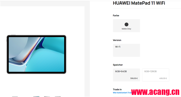 还有一个惊喜是,华为 MatePad 11 此前已在华为德国官网上架,提供6+64GB、6+128GB 两款 Wi-Fi 版,售价分别为 399 欧元(约合 3105 元人民币)和 499 欧元(约合 3883 元人民币)。